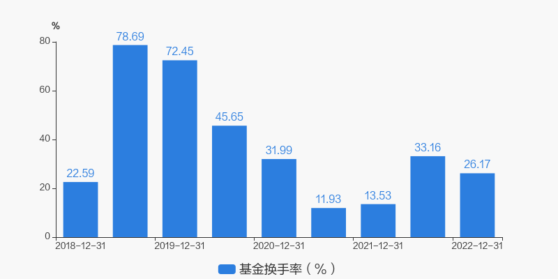 数据说明:1、报告期时间为半年的,对应的基金换手率为半年度换手率。报告期时间为年的,对应的基金换手率为年度换手率。 2、基金换手率用于衡量基金投资组合变化的频率。换手率越高,操作越频繁,越倾向于择时波段操作;基金换手率越低,操作越谨慎,越倾向于买入并持有策略。
