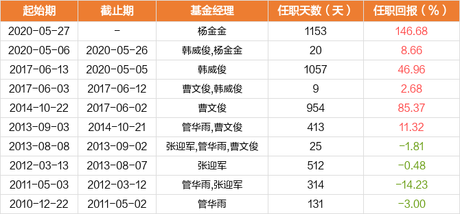 杨金金现管理4只产品(包括A类和C类),管理总规模为116.63亿元,平均年化回报为37.32%。