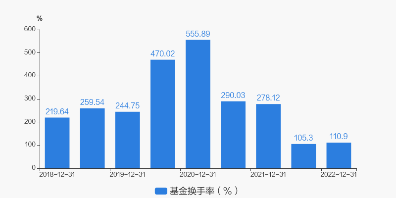 基金最新换手率为110.9%,上一期换手率为105.3%。历史换手率最高为2020年12月31日,高达555.89%。