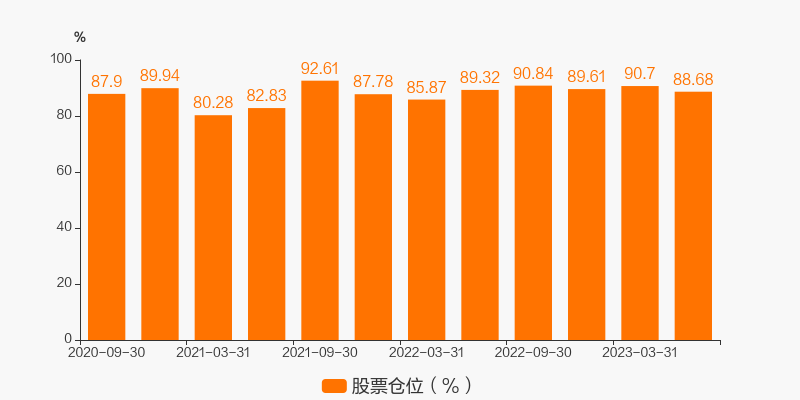 最新数据显示,本期该基金的股票仓位达88.68%。较上一期环比变化了-2.23%。