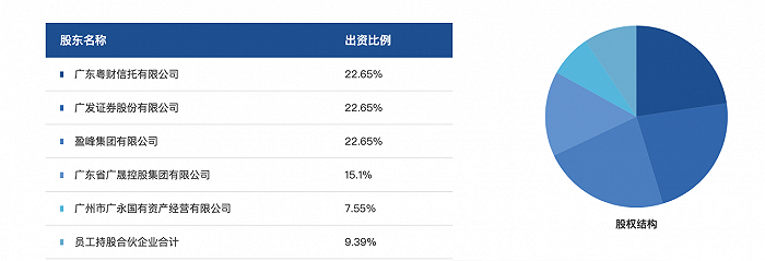从股权结构来看,易方达基金主要股东有3个:广东粤财信托有限公司、广发证券与盈峰集团有限公司,出资比例均为22.65%。