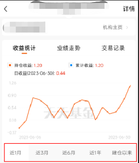 持仓页面提供更多收益数据,点击收益统计、业绩走势,可查看建仓以来数据,数据维度更丰富。