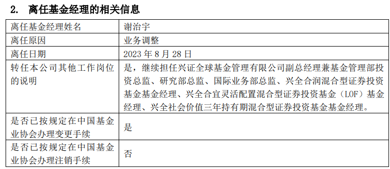 (原标题:谢治宇离任兴全趋势投资混合,目前仍在管3只基金)