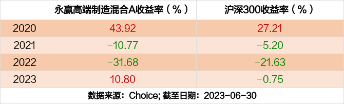 2023年度,截止至6月30日,永赢高端制造混合A基金收益10.80%,同期沪深300收益-0.75%,同类排名319/3541。