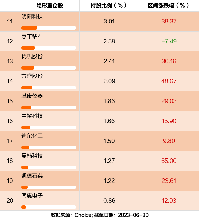 根据华夏北交所创新中小企业精选两年定开混合发起式2023年半年报,该基金持仓比例排名11到20个股依次为:明阳科技,惠丰钻石,优机股份,方盛股份,基康仪器,中裕科技,迪尔化工,晟楠科技,凯德石英,同惠电子。