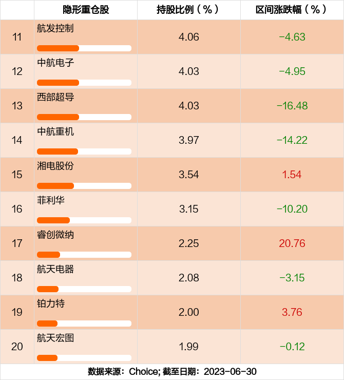根据永赢高端装备智选混合发起C2023年半年报,该基金持仓比例排名11到20个股依次为:航发控制,中航电子,西部超导,中航重机,湘电股份,菲利华,睿创微纳,航天电器,铂力特,航天宏图。