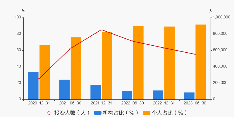 根据嘉实新能源新材料股票A2023年半年报,最新持有人户数为55.19万人,较上期环比增加-12.40%。其中,个人持有者占比91.49%,机构持有者占比8.51%。