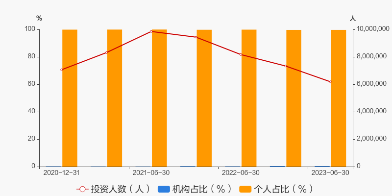 根据招商中证白酒指数(LOF)A2023年半年报,最新持有人户数为618.37万人,较上期环比增加-15.66%。其中,个人持有者占比99.66%,机构持有者占比0.34%。