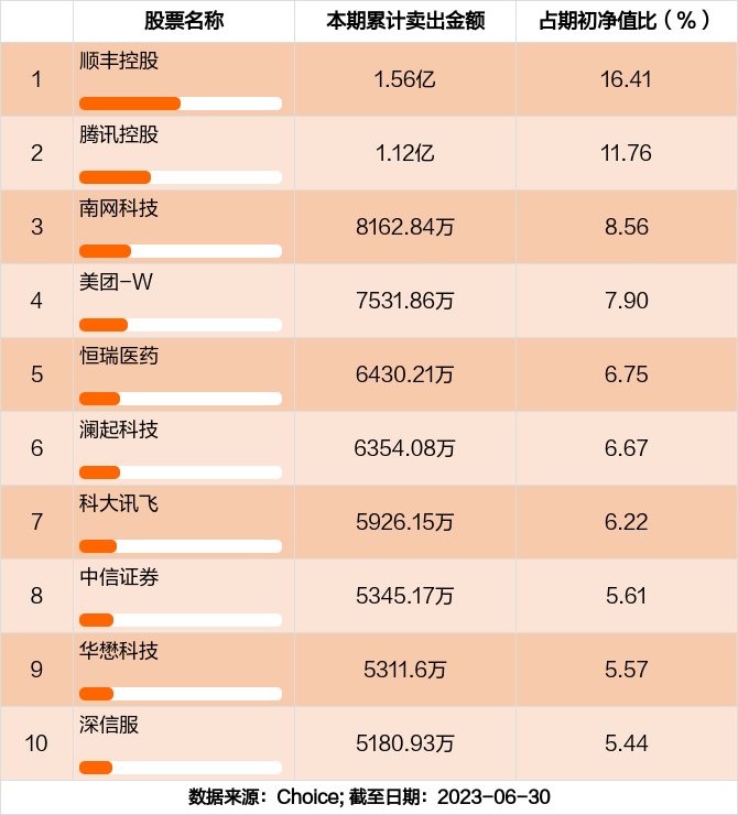 本期基金累计卖出金额最高的前十大个股分别是顺丰控股,腾讯控股,南网科技,美团-W,恒瑞医药,澜起科技,科大讯飞,中信证券,华懋科技,深信服。