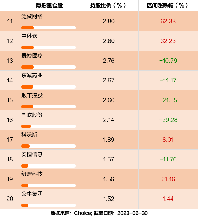 根据嘉实泰和混合2023年半年报,该基金持仓比例排名11到20个股依次为:泛微网络,中科软,爱博医疗,东诚药业,顺丰控股,国联股份,科沃斯,安恒信息,绿盟科技,公牛集团。
