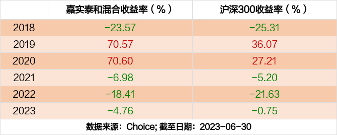2023年度,截止至6月30日,嘉实泰和混合基金收益-4.76%,同期沪深300收益-0.75%,同类排名1700/2265。