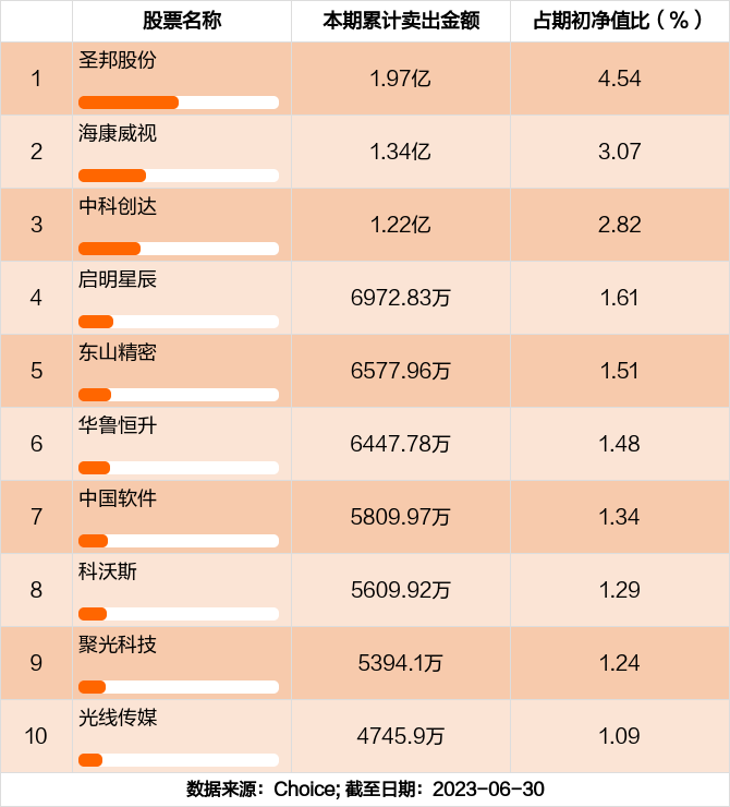 本期基金累计卖出金额最高的前十大个股分别是圣邦股份,海康威视,中科创达,启明星辰,东山精密,华鲁恒升,中国软件,科沃斯,聚光科技,光线传媒。