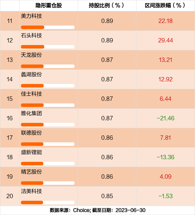 根据大摩多因子策略混合2023年半年报,该基金持仓比例排名11到20个股依次为:美力科技,石头科技,天龙股份,蠡湖股份,佳士科技,雅化集团,联德股份,盛新锂能,精艺股份,洁美科技。