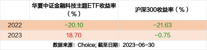 2023年度,截止至6月30日,华夏中证金融科技主题ETF基金收益18.70%,同期沪深300收益-0.75%,同类排名116/1788。