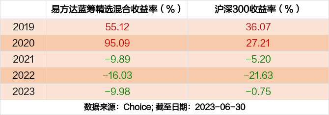 2023年度,截止至6月30日,易方达蓝筹精选混合基金收益-9.98%,同期沪深300收益-0.75%,同类排名2741/3541。