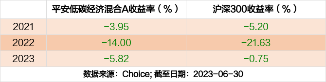 2023年度,截止至6月30日,平安低碳经济混合A基金收益-5.82%,同期沪深300收益-0.75%,同类排名2100/3541。