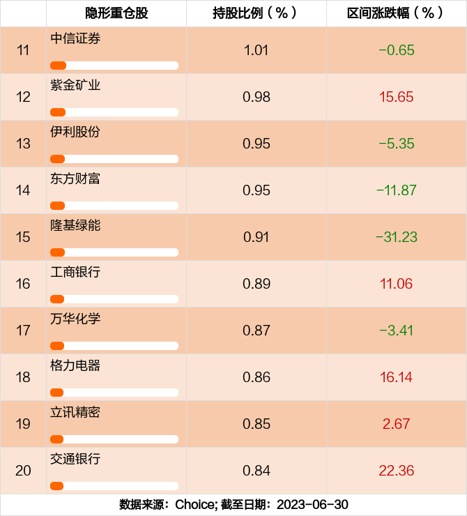 根据华夏沪深300ETF2023年半年报,该基金持仓比例排名11到20个股依次为:中信证券,紫金矿业,伊利股份,东方财富,隆基绿能,工商银行,万华化学,格力电器,立讯精密,交通银行。