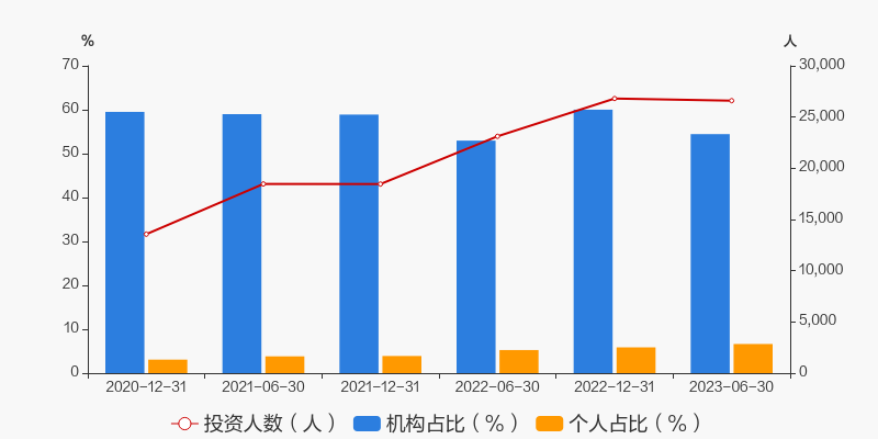 根据华夏沪深300ETF2023年半年报,最新持有人户数为2.66万人,较上期环比增加-0.77%。其中,个人持有者占比6.64%,机构持有者占比54.45%。