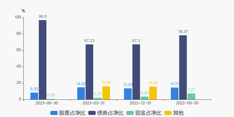 数据说明:如果出现各资产总和占净值比例超过100%的现象,一般是由于基金在运作过程中存在负债,如存在应付账款或债券质押杠杆交易等情况。