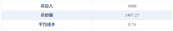 可以看出,跌得越多的时候,同样一笔定投扣款,买到的基金份额越多,拉低平均成本的效果也就越明显。四个月下来,我们一共花4000元买入5407.27份额,每一份额的平均成本为0.74元,比最初的1元便宜了26%。这意味着,该指数的净值不用回到1,只需回到0.74元以上,我们就可以盈利。定投的能量来自低点的蓄力,越是低位,越需要坚持。