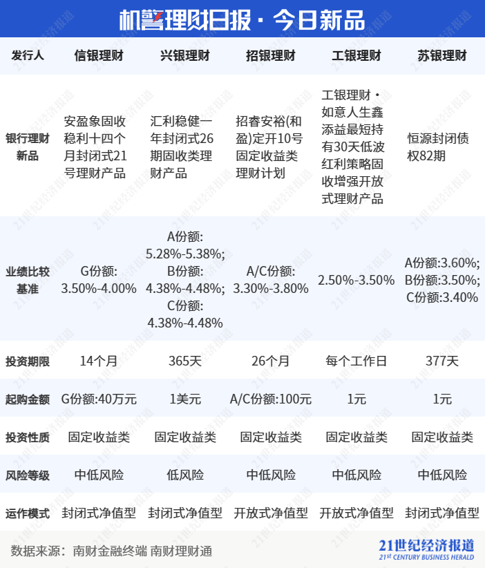 兴银理财“稳添利日盈增利”日开产品收益领先 低波资产叠加高评级债券兼顾流动性和收益性丨机警理财日报