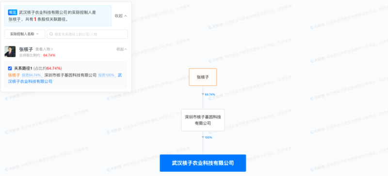 值得注意的是,该公司由深圳市核子基因科技有限公司百分百控股,而深圳市核子基因的实际控制人正是张核子。