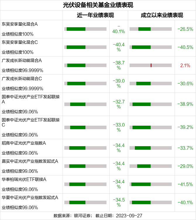 光伏设备相关基金业绩表现