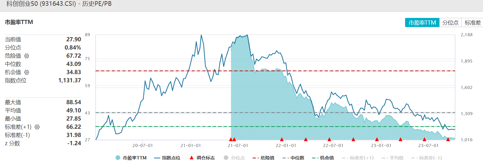 此外,中证科创创业50指数的估值水平也接近于历史最低。