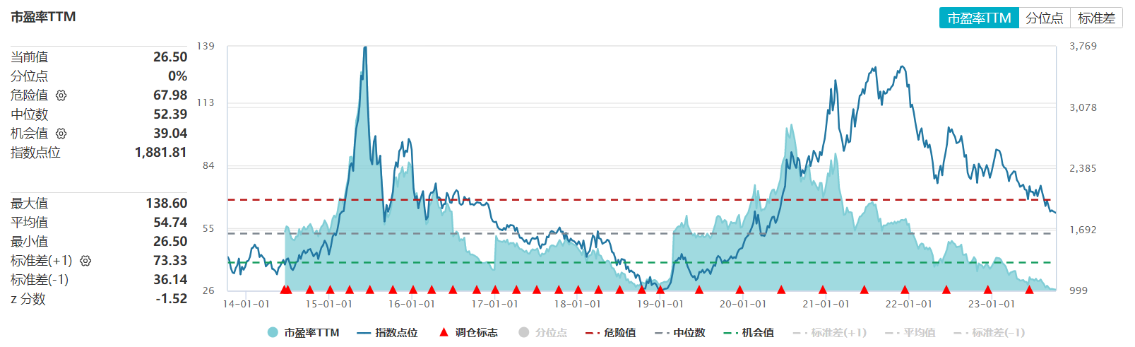 首先是创业板指,目前大致处于历史2%分位的位置。
