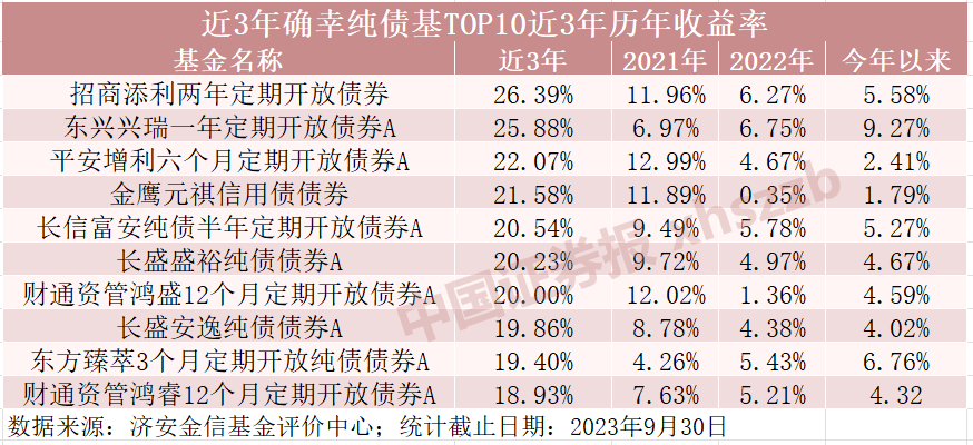 (原标题:近3年收益率前十纯债型基金业绩均超18%)