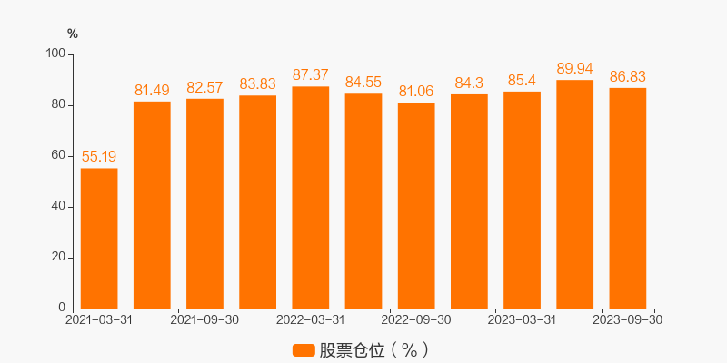 最新数据显示,本期该基金的股票仓位达86.83%。较上一期环比变化了-3.46%。