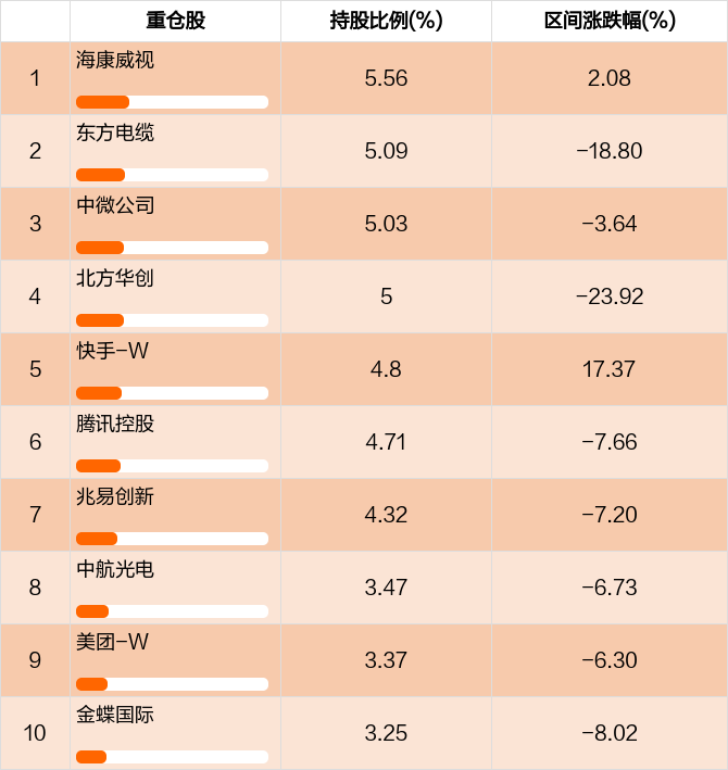 基金前十大重仓股占比变化
