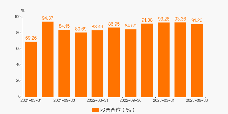 最新数据显示,本期该基金的股票仓位达91.26%。较上一期环比变化了-2.25%。
