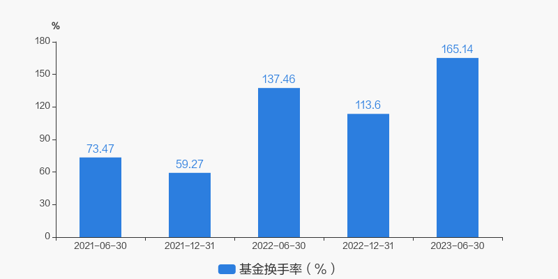 基金最新换手率为165.14%,上一期换手率为113.6%。历史换手率最高为2023年6月30日,高达165.14%。