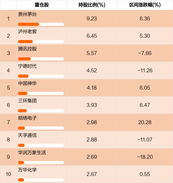 基金前十大重仓股占比变化