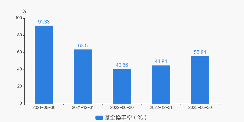基金最新换手率为55.84%,上一期换手率为44.84%。历史换手率最高为2021年6月30日,高达91.33%。