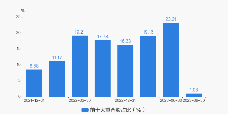 从十大重仓股情况来看,最新一期前十大重仓股占比为1.03%。