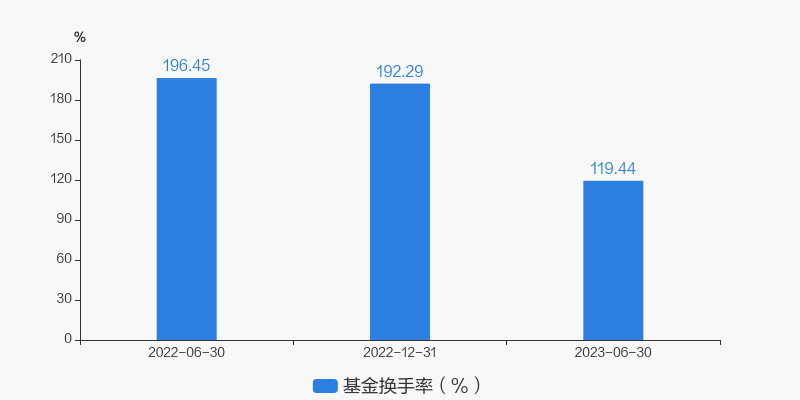基金最新换手率为119.44%,上一期换手率为192.29%。历史换手率最高为2022年6月30日,高达196.45%。