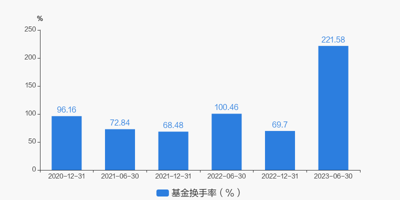 基金最新换手率为221.58%,上一期换手率为69.7%。历史换手率最高为2023年6月30日,高达221.58%。