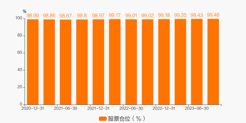最新数据显示,本期该基金的股票仓位达99.48%。较上一期环比变化了0.05%。