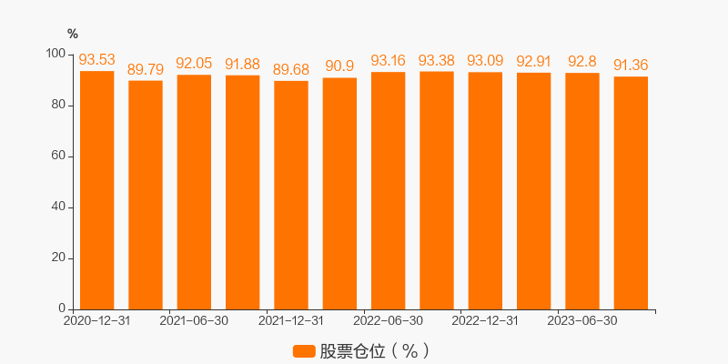 最新数据显示,本期该基金的股票仓位达91.36%。较上一期环比变化了-1.55%。