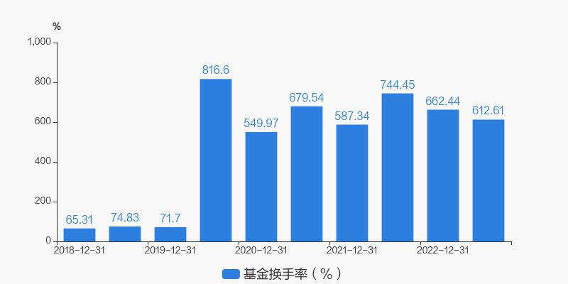 基金最新换手率为612.61%,上一期换手率为662.44%。历史换手率最高为2020年6月30日,高达816.6%。