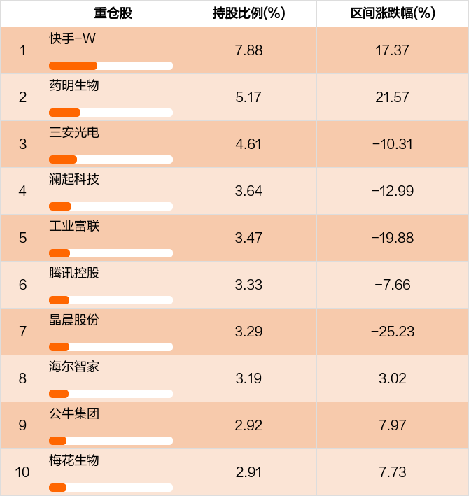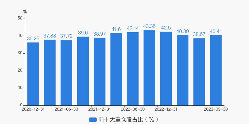 从十大重仓股情况来看,最新一期前十大重仓股占比为40.41%。
