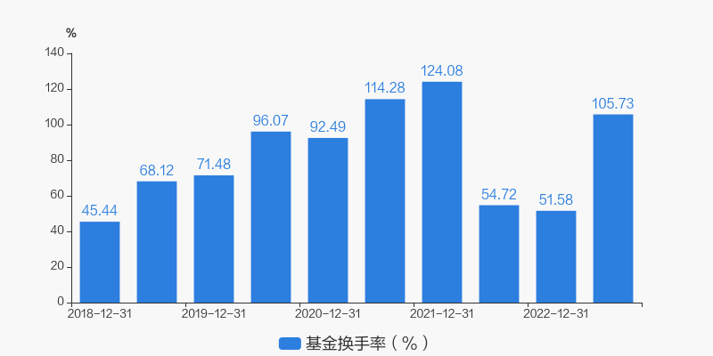 基金最新换手率为105.73%,上一期换手率为51.58%。历史换手率最高为2021年12月31日,高达124.08%。