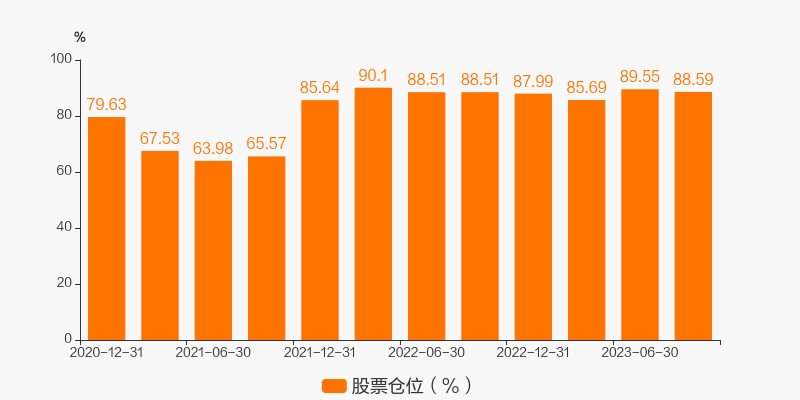 最新数据显示,本期该基金的股票仓位达88.59%。较上一期环比变化了-1.07%。