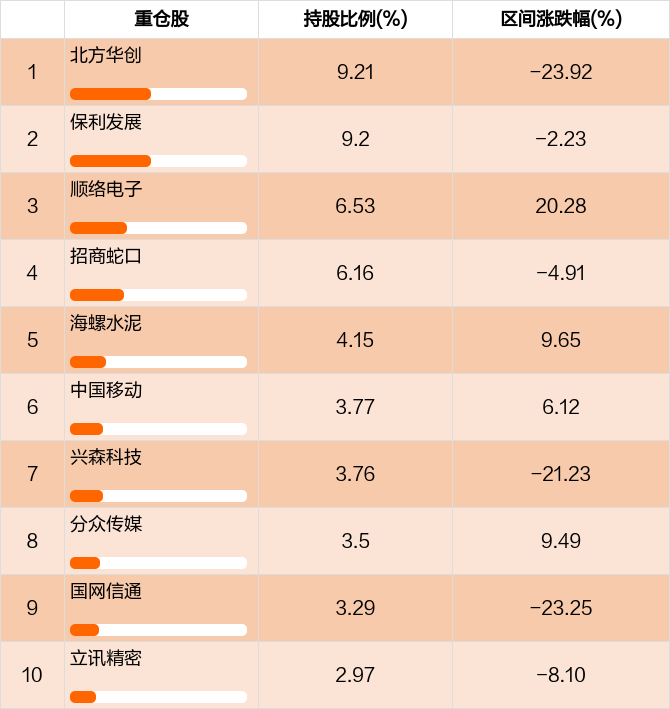 基金前十大重仓股占比变化