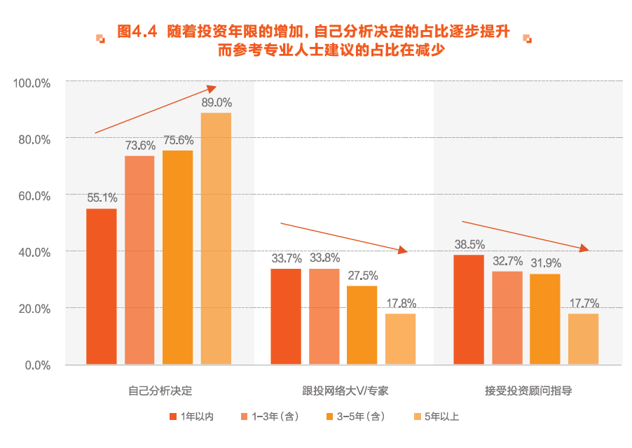 原因就在于,老基民可能过度依赖过往经验。投资年限较长的人群更容易遵从自身经验判断,而1年新手很多愿意接受专业指导。