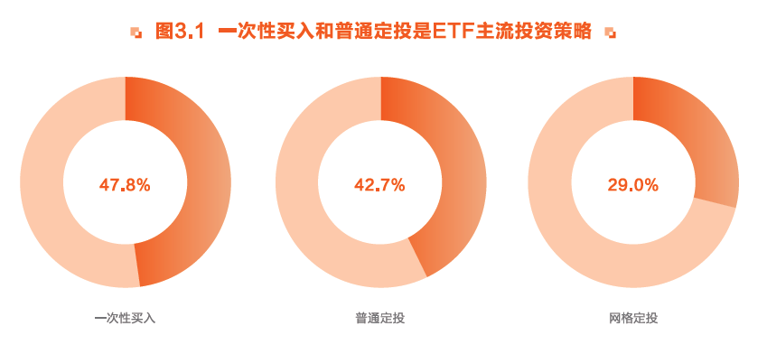通过调研发现,普通定投和一次性买入是大多数投资者采用的方式,人数占比分别为47.8%和42.7%,同时还有29%的投资者选择了网格定投策略。