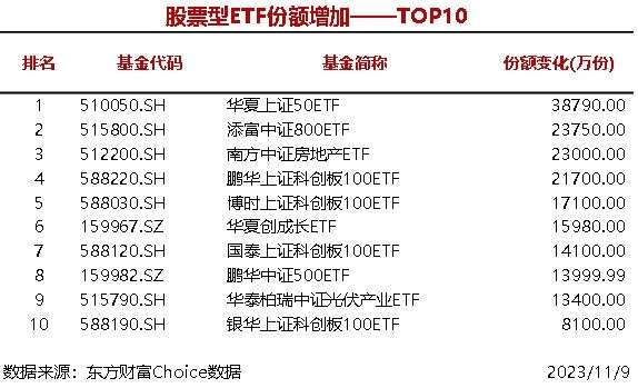 9只股票型ETF份额增加超1亿份,华夏上证50ETF增加3.88亿份