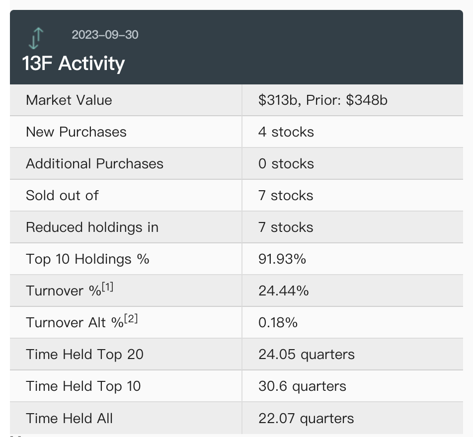 13F数据平台Whalewisdom统计显示,今年三季度,该公司共新进了4只股票、减持了7只股票,同时还清仓了7只股票。伯克希尔的持仓集中度依然很高,前十大持仓股占到总持仓的91.93%。